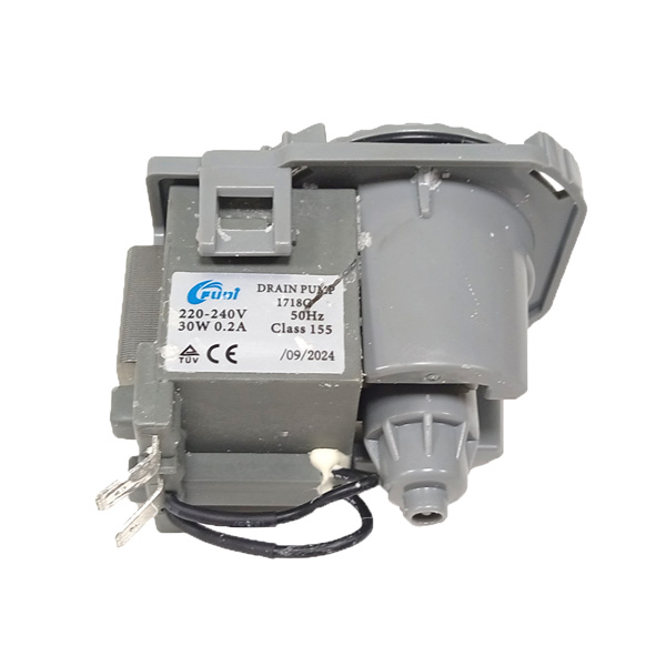 Насос сливной (помпа) 1718C Fudi: 30W, крепл. — 4 защелки, выводы — сзади вместе, (демонтаж)