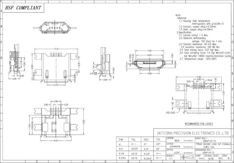 Гнездо micro USB 2.0 MC-020 UBAF-0113 Blackberry Lenovo OPPO ZTE 5pin Mctonn