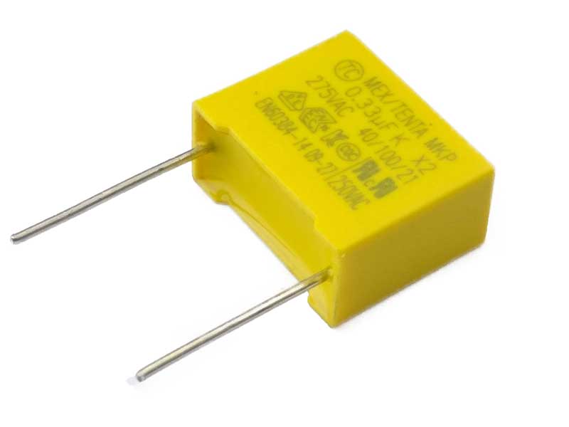 Конденсатор плёночный помехоподавляющий 0,33мкФ 275В ±10% 18х15мм MKP Tenta