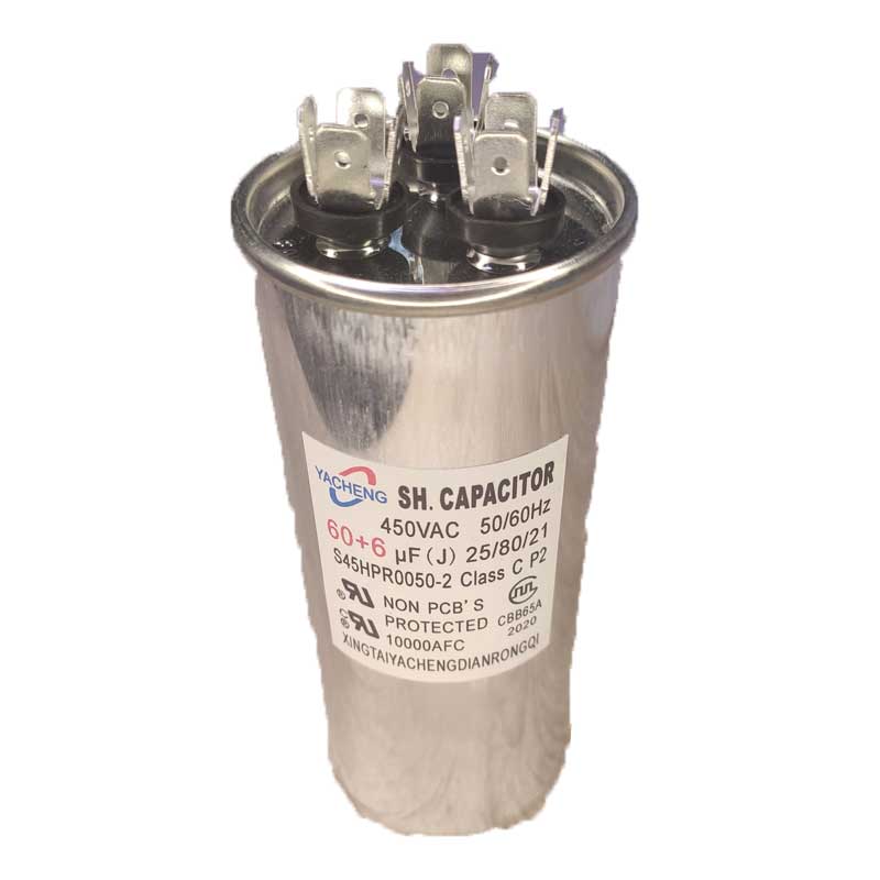 Конденсатор пусковой 60 мкФ + 6мкФ 450 В 50x125 CBB65A клеммы (БТ)