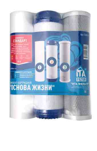 Комплект сменных фильтрующих картриджей "СТАНДАРТ" предназначен для очистки водопроводной воды в питьевых системах ITA Filter и системах обратного осмоса, а также других водоочистителях похожей конструкции.