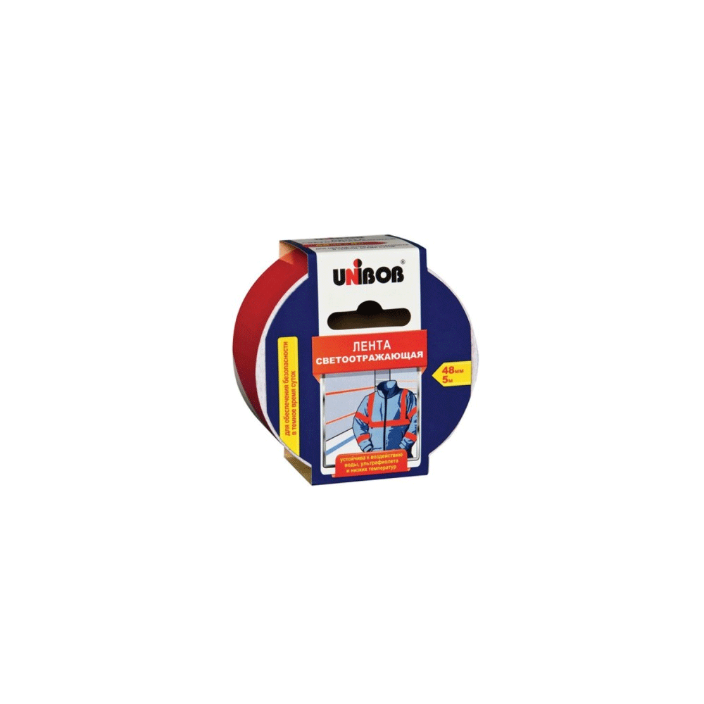 Клейкая лента светоотражающая UNIBOB 48мм*5м,красно-белая