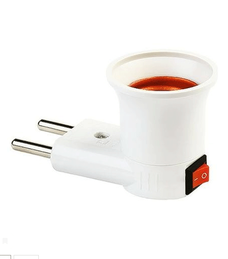 Переходник с вилки на патрон E27 с выключателем применяется для организации временного освещения, например при ремонте помещения. Позволяет быстро, надежно и безопасно подключить лампу с цоколем Е27 к стационарной розетке бытовой электросети 220 В