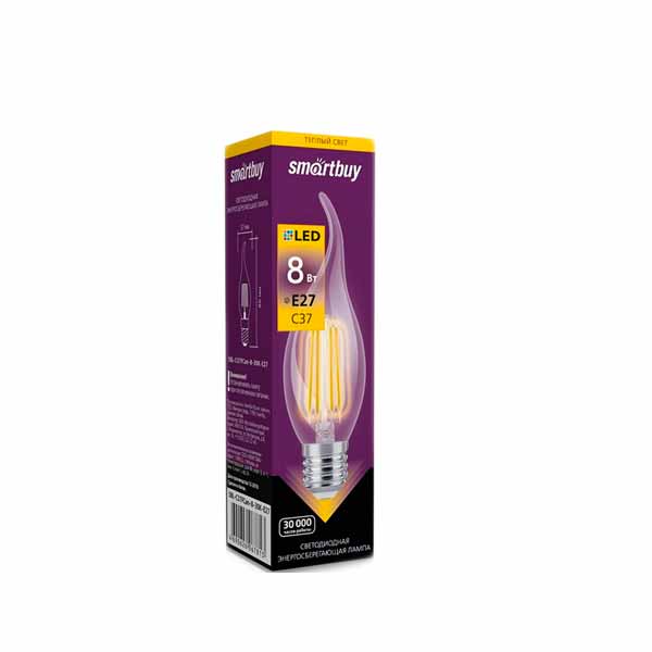 Лампа светодиодная SBL-C37F-8-30K-E27 8 Вт (=75 Вт) 220В/50Гц 3000К теплый свет K E27 прозрачная Smart Buy