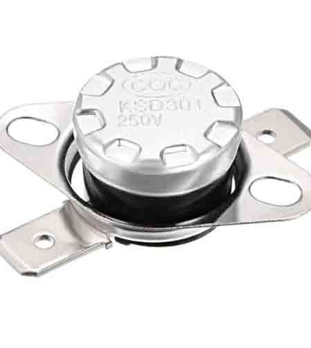 Биметаллический термостат KSD301-9.0/16BL15S40-G с нормально замкнутым контактом служит для размыкания электрической цепи при достижении температуры 90°C. Возврат в исходное состояние происходит при опускании температуры до 50°C.