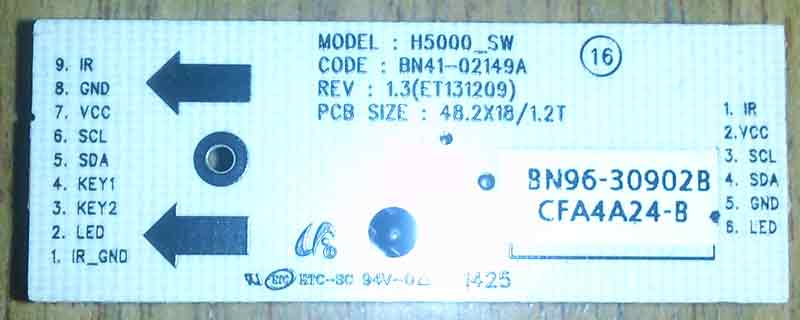 KeyBoard Samsung UE40H5270AUXRU Ver. HS02 H5000_SW BN41-02149A Rev1.3