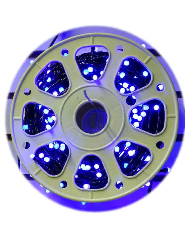 Электрогирлянда уличная - 500 синих, больших диодов, используется на улице, черный провод каучук 50 м., работает от сети с напряжением 220В.