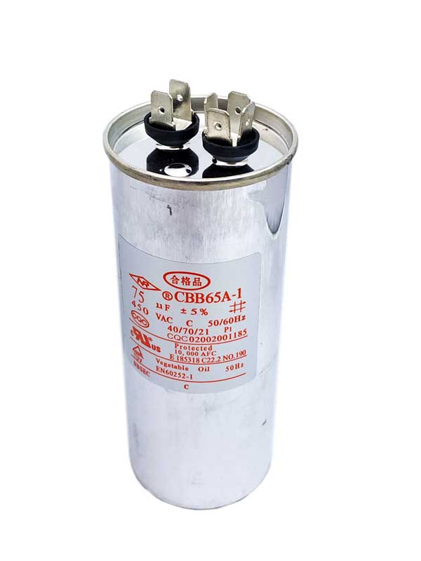 Конденсаторы CBB65 – металлизированные полипропиленовые пленочные конденсаторы постоянной ёмкости в герметизированном цилиндрическом корпусе, накапливают заряд от 4мкФ до 150мкФ при рабочем напряжении переменного тока 450В. Конденсатор CBB65 может применяться как пусковой или рабочий. Предельное допустимое отклонение ёмкости ±5%. По основным характеристикам являются аналогами конденсаторов К78-17. Повышенная рабочая температура среды составляет не более +85°С, пониженная рабочая температура – не ниже -40°С. Предельный тангенс угла потерь 0,002. Наработка при этом составляет не менее 1000 ч, 3000 ч или 10 000 в зависимости от серии конденсатора.