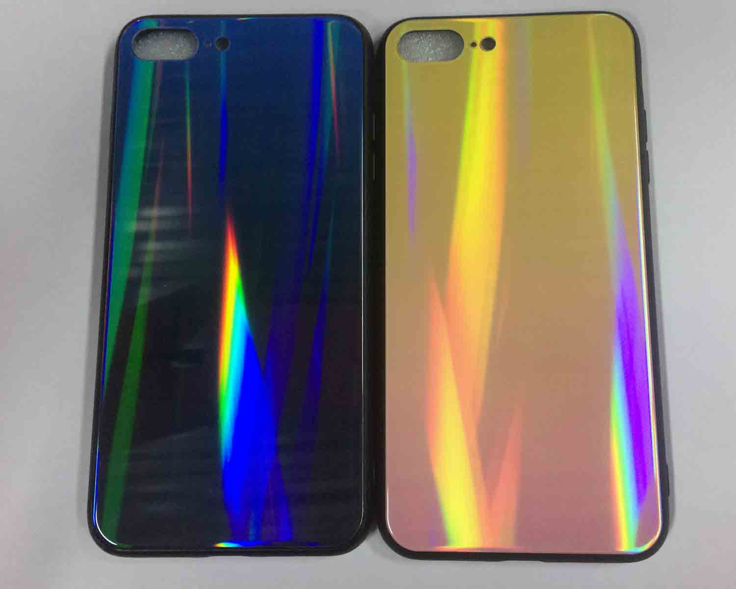 Чехол iPhone 7Pluse бампер силикон / стекло "Градиент мерцающий"