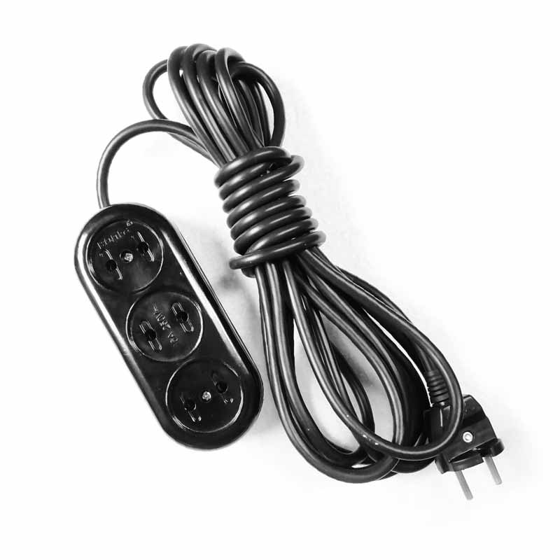Удлинитель бытовой 5 м. овальный черный (3 гнезда), предназначен для подключения сразу нескольких электроприборов, доступ которых к электросети затруднен. Устройство оснащено колодкой из карболита с тремя розетками без заземляющих контактов и сетевым шнуром с универсальной вилкой.
