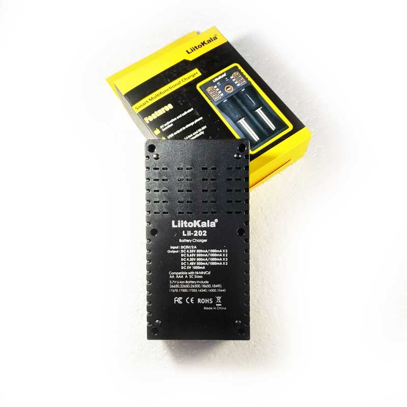 LiitoKala Engineer Lii-202 - универсальное интеллектуальное зарядное устройство, совместимое практически со всеми цилиндрическими аккумуляторами, тем самым устраняющее необходимость использования нескольких зарядных устройств. Lii-202 автоматически распознает литий-ионные, никель-металлгидридные и никель-кадмиевые аккумуляторы, заряжает литий-фосфатные (LiFePO4) аккумуляторы, а так же Li-ION аккумуляторы с конечным напряжением 4,35в.