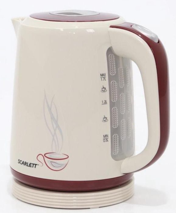Электрочайник Scarlett SC-028 Olivia привлекает внимание своим белым цветом с красными вставками. Пластик при изготовлении чайника использовался высокого качества, предъявляемого к бытовым приборам, и при нагревании не издает запаха. Закрытая спираль мощностью 2200 Вт позволяет нагреть полный чайник объемом 1.7 литра за сравнительно малое количество времени.